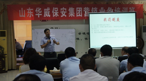 集团高级顾问蒋晓明先生为大家重点讲解了市场营销概念及保安市场营销的特点,对华威的营销方向、具体操作等方面进行了讲解,丰富了大家的营销理论知识。